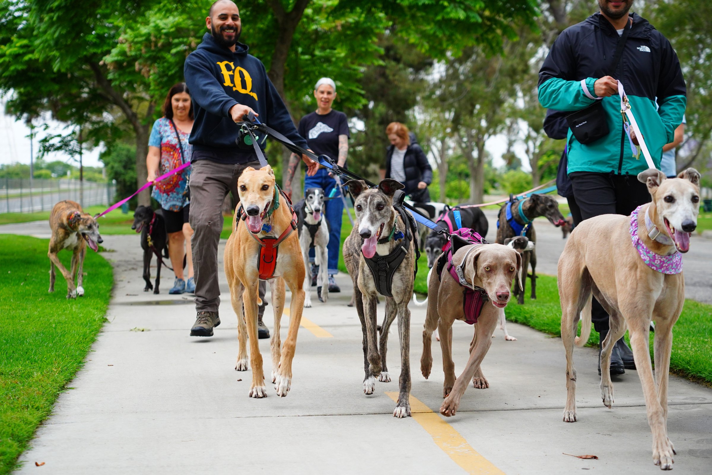 Greys of El Dorado in Long Beach is a 501c3 non-profit (93-4862434) organization that inspires community and promotes adoptions for all types of sighthounds. We have built relationships with two of the most successful sighthound rescue agencies in Southern California. The Sighthounds we help include retired racing Greyhounds, Galgos from Spain, Italian Greyhounds and more. Our community also connects new adopters with people who have years of experience with these calm and affectionate dogs. We meet every Saturday morning in El Dorado Park in Long Beach to enjoy a leisurely 2-mile walk and share our experiences in adoption and rescue with each other. There are often 10-15 people and up to 25 hounds. Everyone is welcome on our walks and we especially encourage people who are curious about sighthounds.